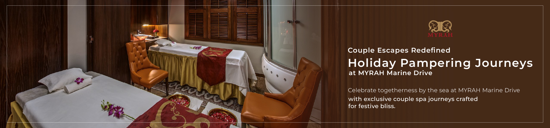 “Celebrate togetherness by the sea at MYRAH Marine Drive with exclusive couple spa journeys crafted for festive bliss.”